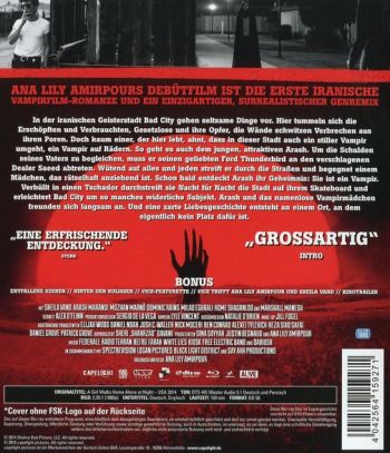 In der iranischen Geisterstadt Bad City gehen seltsame Dinge vor. Hier tummeln sich die Erschöpften und Verbrauchten, Gesetzlose und ihre Opfer, die Wände schwitzen Verbrechen aus ihren Poren. Doch kaum einer, der hier lebt, ahnt, dass in dieser Stadt auch ein stiller Vampir umgeht, ein Vampir auf Rädern. So geht es auch dem jungen, attraktiven Arash. Um die Schulden seines Vaters zu begleichen, muss er seinen geliebten Ford Thunderbird an den verschlagenen Dealer Saeed abtreten. Wütend auf alles und jeden, streift er durch die Straßen und begegnet einem Mädchen, das rätselhaft anziehend ist. Schon bald entdeckt Arash ihr Geheimnis: sie ist ein Vampir. Verhüllt in einen Tschador durchstreift sie Nacht für Nacht die Stadt auf ihrem Skateboard und erleichtert Bad City um so manches widerliche Subjekt. Arash und das namenlose Vampir-Mädchen freunden sich langsam an. Und eine zarte Liebesgeschichte entsteht an einem Ort, an dem eigentlich kein Platz dafür ist. .
