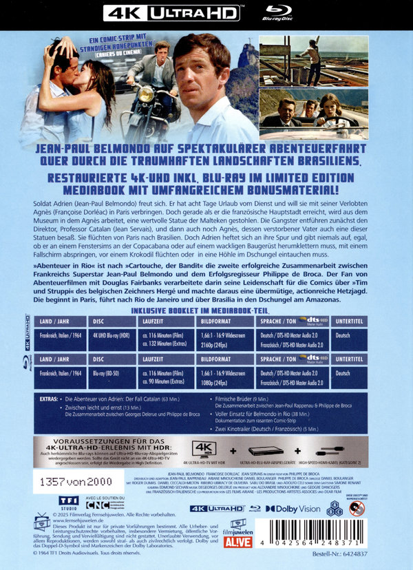 20-seitiges Booklet; "Die Abenteuer von Adrien: Der Fall Catalan" (ca. 66 Min.); "Filmische Brüder" (ca. 10 Min.); "Zwischen leicht und ernst" (ca. 14 Min.); "Eine Bar in Rio für Belmondo" - Dokumentation zum rasanten Comic-Strip; Kinotrailer, weitere Highlights