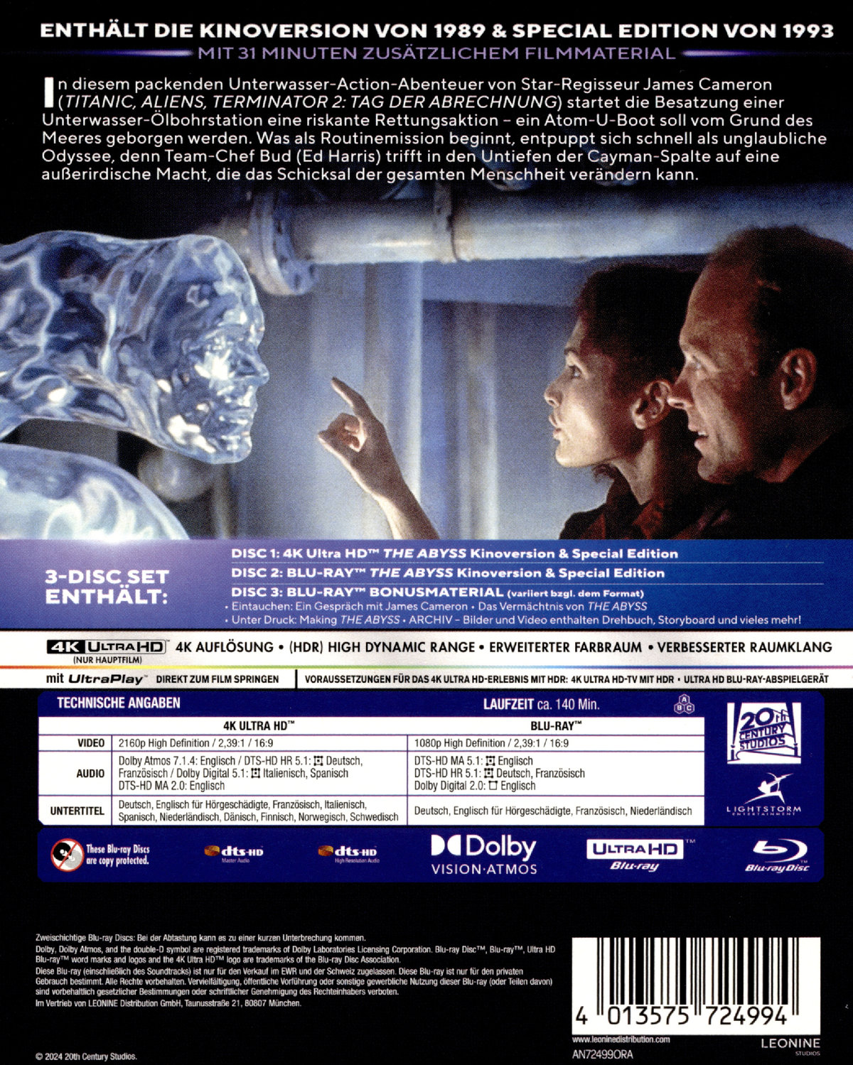 Eintauchen: Ein Gespräch mit James Cameron, Das Vermächtnis von THE ABYSS, Unter Druck: Making THE ABYSS, ARCHIV – Bilder und Video enthalten Drehbuch, Storyboard und vieles mehr!