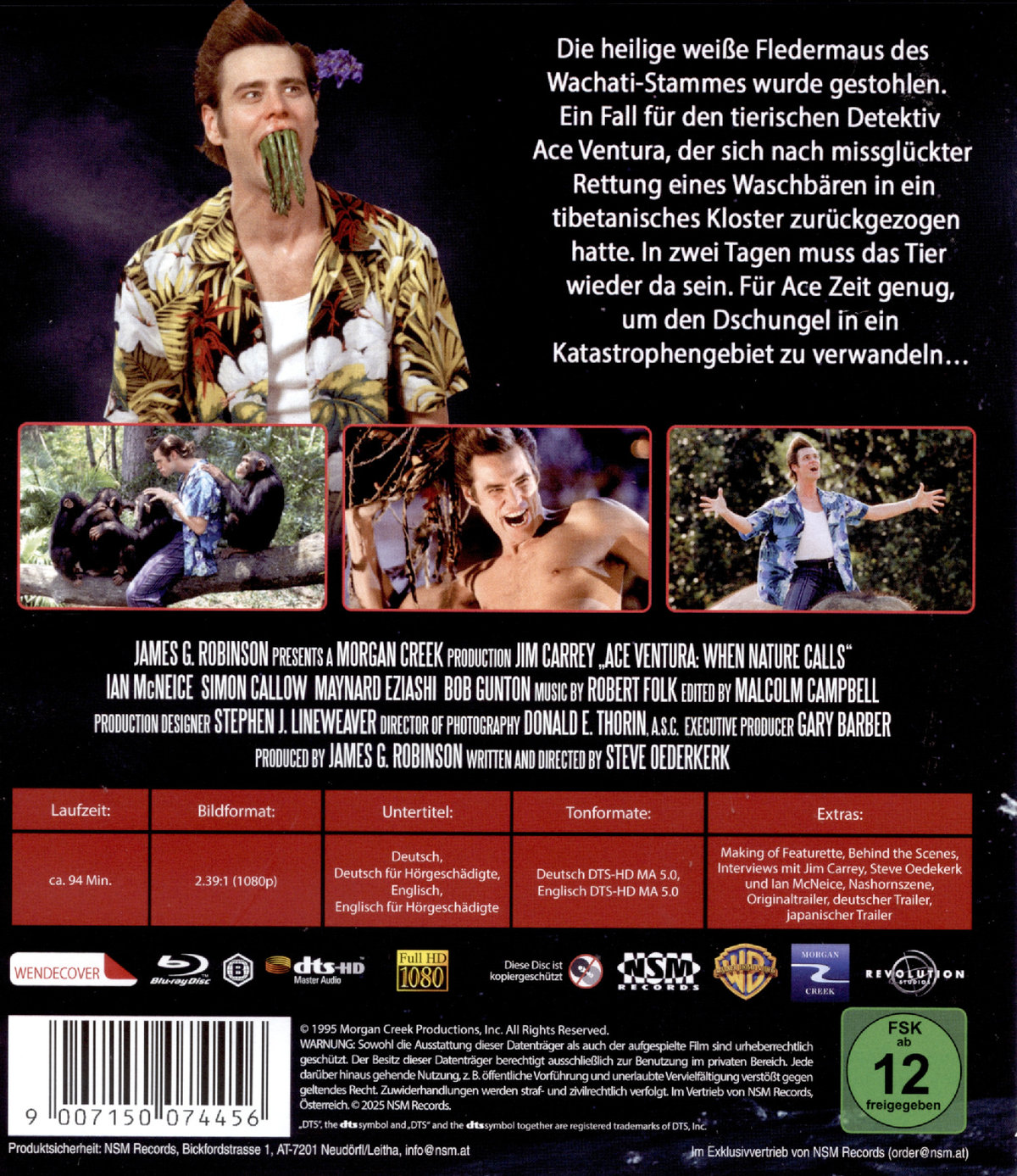 Die heilige weiße Fledermaus des Wachati-Stammes wurde gestohlen. Ein Fall für den tierischen Detektiv Ace Ventura, der sich nach mißglückter Rettung eines Waschbärens in ein tibetanisches Kloster zurückgezogen hatte. In zwei Tagen muß das Tier wieder da sein. Für Ace Zeit genug, um den Dschungel in ein Katastrophengebiet zu verwandeln …
