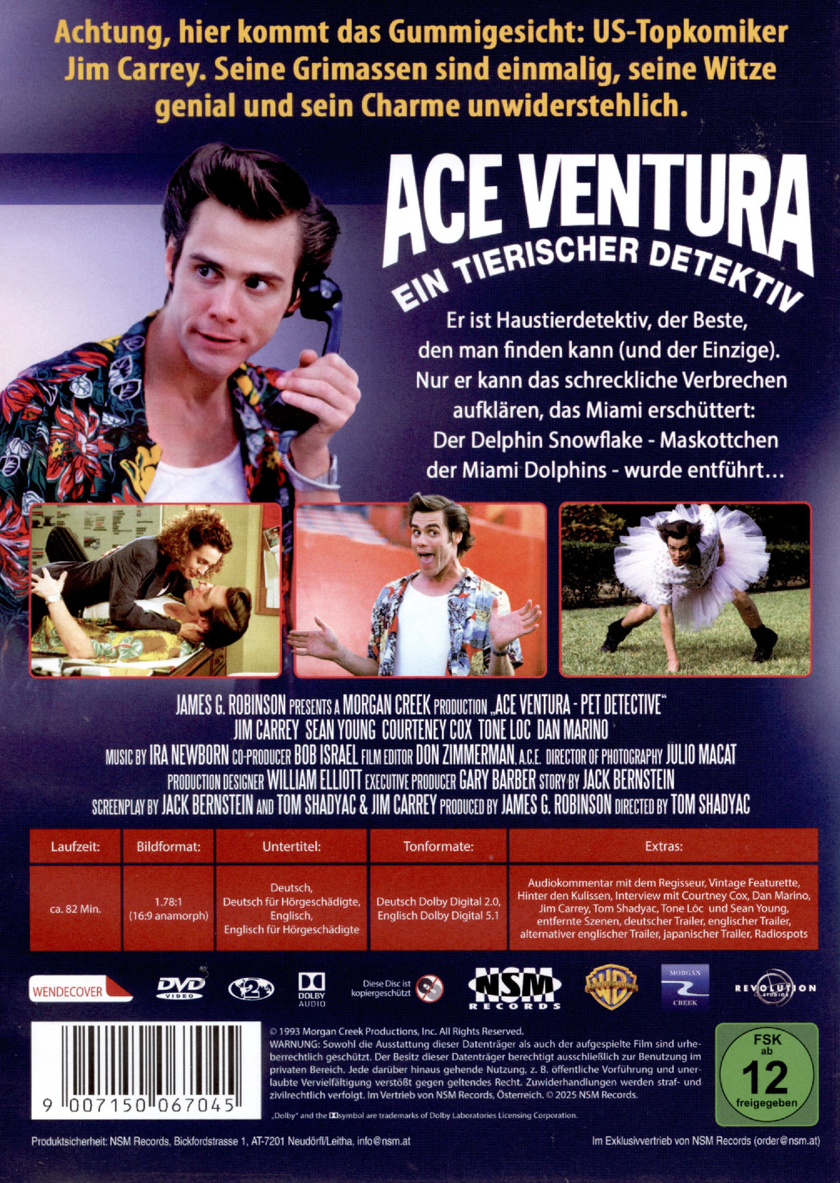 Audiokommentar vom Regisseur Tom Shadyak (englisch ohne UT); Radiospots; Vintage Featurette (Englisch mit optionalen Untertiteln deutsch oder englisch); Hinter den Kulissen (Englisch mit optionalen Untertiteln deutsch oder englisch); Interview mit Courteney Cox (Englisch mit optionalen Untertiteln deutsch oder englisch); Interview mit Dan Marino (Englisch mit optionalen Untertiteln deutsch oder englisch); Interview mit Jim Carrey (Englisch mit optionalen Untertiteln deutsch oder englisch); Interview mit Tom Shadyac (Englisch mit optionalen Untertiteln deutsch oder englisch); Interview mit Tone Loc (Englisch mit optionalen Untertiteln deutsch oder englisch); Interview mit Sean Young (Englisch mit optionalen Untertiteln deutsch oder englisch); Entfernte Szenen; Deutscher Trailer; Original Trailer; Alternative Englische Trailer; Japanischer Trailer