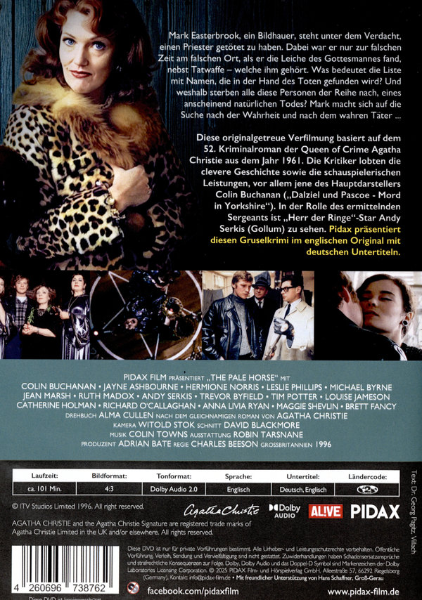 Mark Easterbrook, ein Bildhauer, steht unter dem Verdacht, einen Priester getötet zu haben. Dabei war er nur zur falschen Zeit am falschen Ort, als er die Leiche des Gottesmannes fand, nebst Tatwaffe – welche ihm gehört. Was bedeutet die Liste mit Namen, die in der Hand des Toten gefunden wird? Und weshalb sterben alle diese Personen der Reihe nach, eines anscheinend natürlichen Todes? Mark macht sich auf die Suche nach der Wahrheit und nach dem wahren Täter ... Diese originalgetreue Verfilmung basiert auf dem 52. Kriminalroman der Queen of Crime Agatha Christie aus dem Jahr 1961. Die Kritiker lobten die clevere Geschichte sowie die schauspielerischen Leistungen, vor allem jene des Hauptdarstellers Colin Buchanan („Dalziel und Pascoe - Mord in Yorkshire“). In der Rolle des ermittelnden Sergeants ist „Herr der Ringe“-Star Andy Serkis (Gollum) zu sehen. Pidax präsentiert diesen Gruselkrimi im englischen Original mit deutschen Untertiteln.