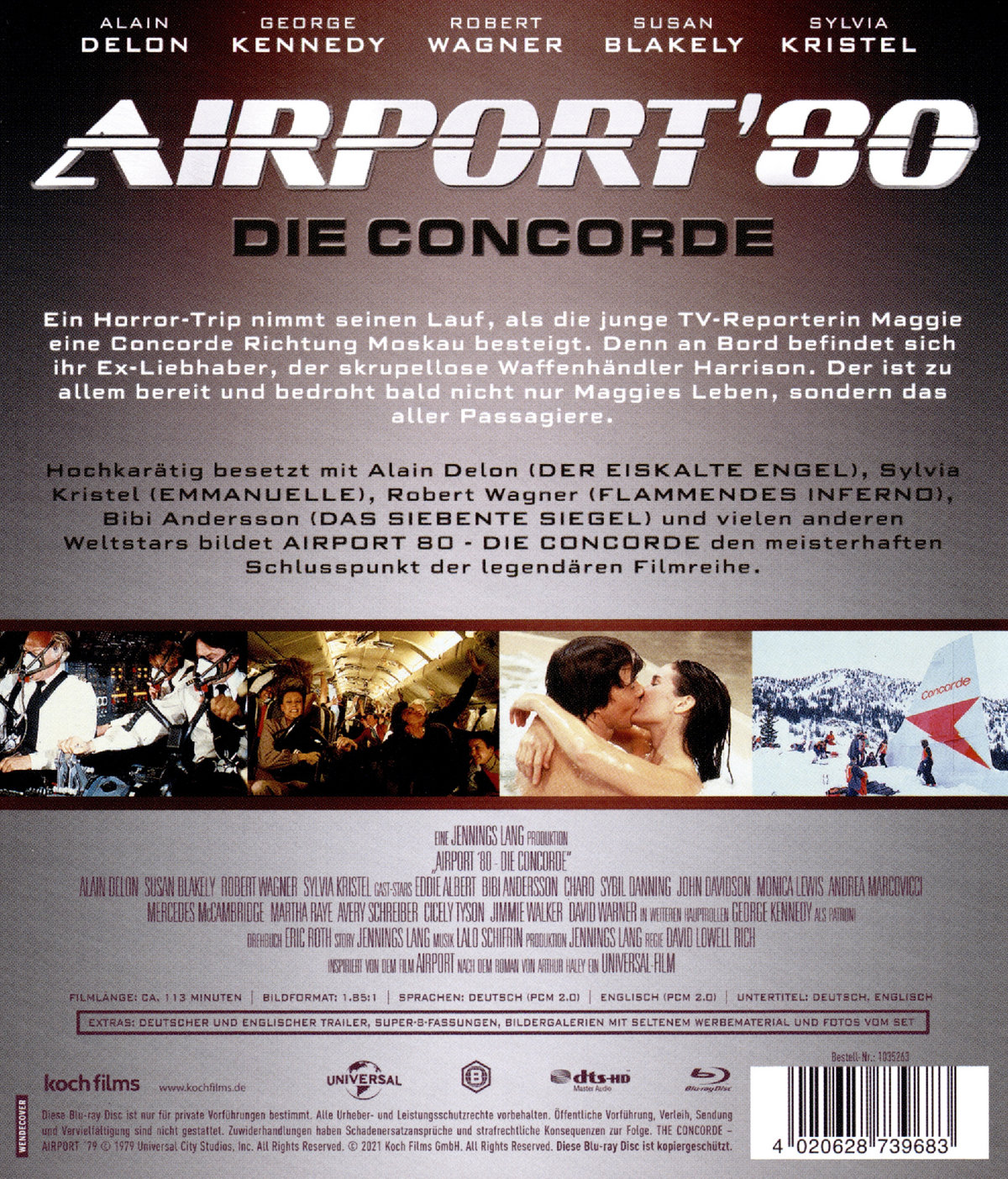 Hochkarätig besetzt mit Alain Delon (DER EISKALTE ENGEL), Sylvia Kristel (EMMANUELLE), Robert Wagner (FLAMMENDES INFERNO), Bibi Andersson (DAS SIEBENTE SIEGEL) und vielen anderen Weltstars bildet „Airport ’80 - Die Concorde“ den meisterhaften Schlusspunkt der legendären Filmreihe.