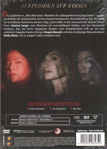 Die Junghexen in "Miss Robichaux's Akademie für außergewöhnliche junge Damen" werden von Kräften der Unwissenheit und des Hasses heimgesucht. Neuankömmling Zoe, die selbst ein furchtbares Geheimnis mit sich trägt, gerät mitten in den schauerlichen Aufruhr hinein. Fiona (Jessica Lange), eine Oberhexe mit unvorstellbaren Kräften, will den Hexenzirkel schützen, aber bei ihrem obsessiven Streben nach Unsterblichkeit trifft sie auf eine unheimlich begabte Voodoo-Königin (Angela Bassett) und eine mordlustige Sklaventreiberin (Kathy Bates), die zu ewigem Leben verdammt sind. American Horror Story: Coven brilliert mit seiner hochkarätigen Besetzung wie der Emmy[r]- und zweifachen OSCAR[r]-Preisträgerin Jessica Lange*, der ebenfalls mit einem OSCAR[r] ausgezeichneten Kathy Bates** und Angela Bassett, die bereits für den ACADEMY AWARD[r] nominiert war. * Emmy[r] Awards: Beste Nebendarstellerin, American Horror Story 2012 und 2014; Golden Globe Award: Beste Nebendarstellerin - Serie, Mini-Serie oder TV-Film in American Horror Story, 2012. ** Emmy[r] Awards: Beste Nebendarstellerin - Fernsehfilm oder Mini-Serie für American Horror Story, 2014. .