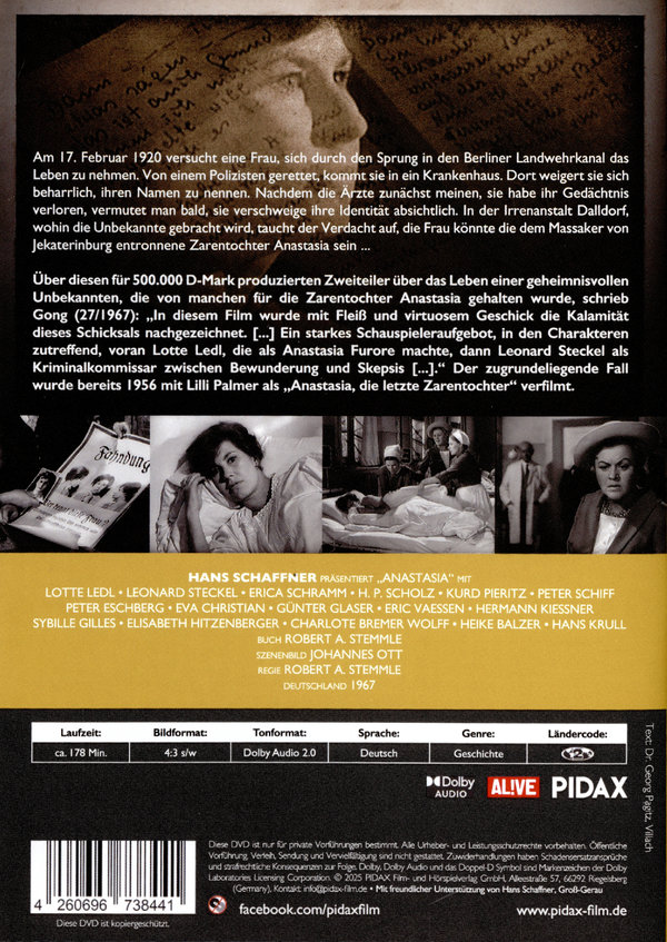 Anastasia / Aufwändiger Zweiteiler nach dem wahren Fall um die angebliche Zarentochter (Pidax Historien-Klassiker) (DVD)