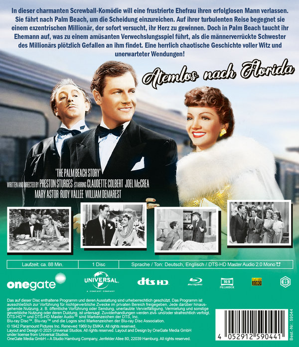 In dieser charmanten Screwball-Komödie will eine frustrierte Ehefrau ihren erfolglosen Mann verlassen. Sie fährt nach Palm Beach, um die Scheidung einzureichen. Auf ihrer turbulenten Reise begegnet sie einem exzentrischen Millionär, der sofort versucht, ihr Herz zu gewinnen. Doch in Palm Beach taucht ihr Ehemann auf, was zu einem amüsanten Verwechslungsspiel führt, als die männerverrückte Schwester des Millionärs plötzlich Gefallen an ihm findet. Eine herrlich chaotische Geschichte voller Witz und unerwarteter Wendungen!