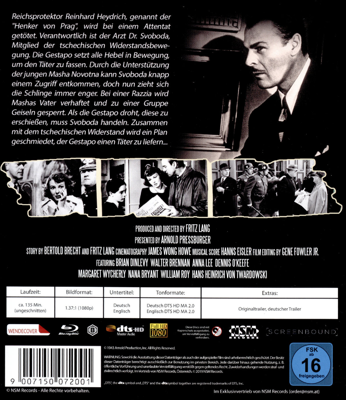 Prag 1942: Reichsprotektor Reinhard Heydrich, genannt der "Henker von Prag", wird bei einem Attentat getötet. Verantwortlich ist der Arzt Dr. Svoboda, Mitglied der tschechischen Widerstandsbewegung. Die Gestapo setzt alle Hebel in Bewegung, um den Täter zu fassen. Durch die Unterstützung der jungen Masha Novotna kann Svoboda knapp einem Zugriff entkommen, doch nun zieht sich die Schlinge immer enger. Bei einer Razzia wird Mashas Vater verhaftet und zu einer Gruppe Geiseln gesperrt. Als die Gestapo droht, diese zu erschießen, muss Svoboda handeln. Zusammen mit dem tschechischen Widerstand wird ein Plan geschmiedet, der Gestapo einen Täter zu liefern… Da es leider keine vollständige deutsche Synchronfassung des Films gibt wurden die fehlenden Szenen aus der Originalfassung eingefügten und die entsprechenden Passagen laufen im Originalton mit deutschen Untertiteln.