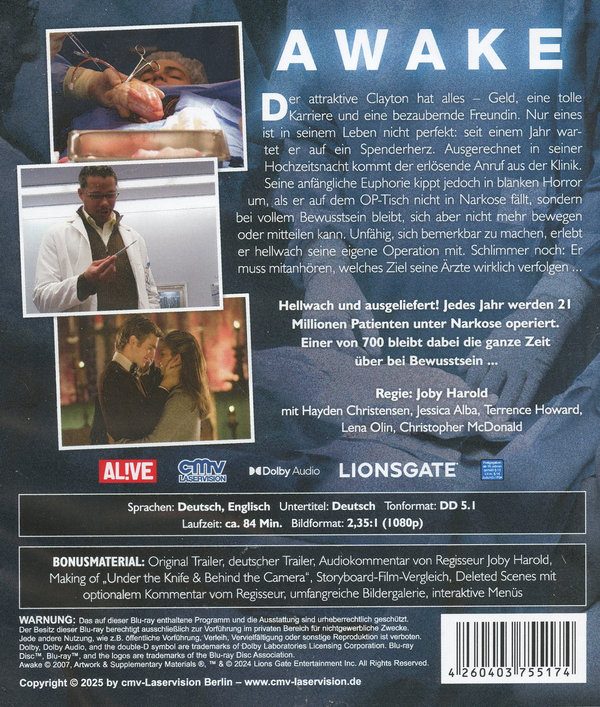Der attraktive Clayton hat alles - Geld, eine tolle Karriere und eine bezaubernde Freundin. Nur eines ist in seinem Leben nicht perfekt: seit einem Jahr wartet er auf ein Spenderherz. Ausgerechnet in seiner Hochzeitsnacht kommt der erlösende Anruf aus der Klinik. Seine anfängliche Euphorie kippt jedoch in blanken Horror um, als er auf dem OP-Tisch nicht in Narkose fällt, sondern bei vollem Bewusstsein bleibt, sich aber nicht mehr bewegen oder mitteilen kann. Unfähig, sich bemerkbar zu machen, erlebt er hellwach seine eigene Operation mit. Schlimmer noch: Er muss mitanhören, welches Ziel seine Ärzte wirklich verfolgen...