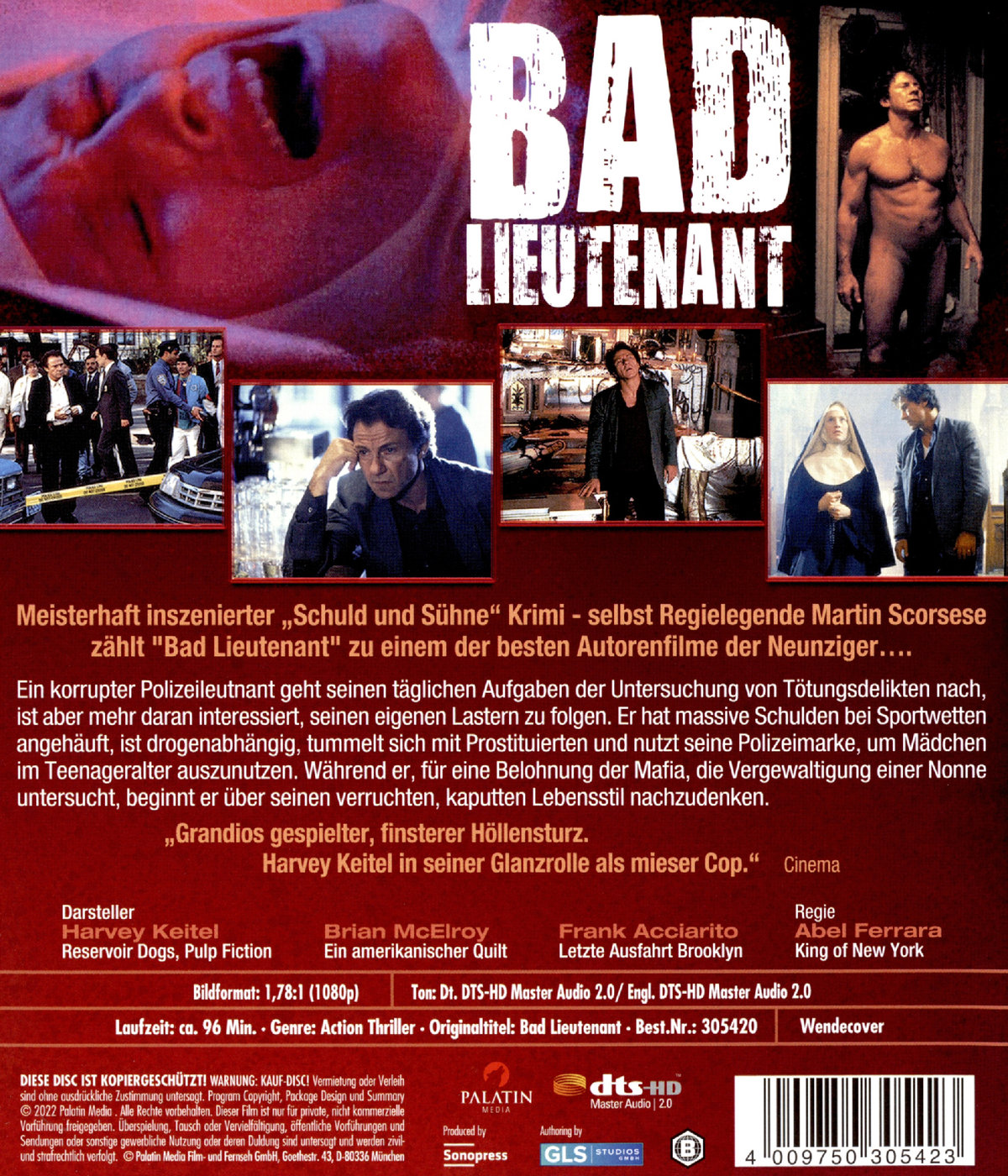 Der titelgebende Polizist (Harvey Keitel) verrichtet seinen Dienst in New York. Aber er ist kein strahlender Ordnungshüter, sondern ein gefallener Mann. Seine Machtposition nutzt er schon mal zur Beschaffung von Drogen. Denn als Bad Lieutenant ist er verschiedenen Süchten verfallen. Neben den Drogen zieht es ihn auch noch zu illegalen Sportwetten bei windigen Buchmachern hin. Seine Dienstehre hat er schon lange an den Nagel gehängt. Als eine Nonne vergewaltigt wird, winkt demjenigen eine hohe Belohnung, der die Täter findet. Da der Bad Lieutenant kein gutes Händchen bei seinen Sportwetten hat, ist er hoch verschuldet. Das Geld ist seine einzige Chance, um mit dem Leben davon zu kommen. Denn die Buchmacher verstehen überhaupt keinen Spaß.