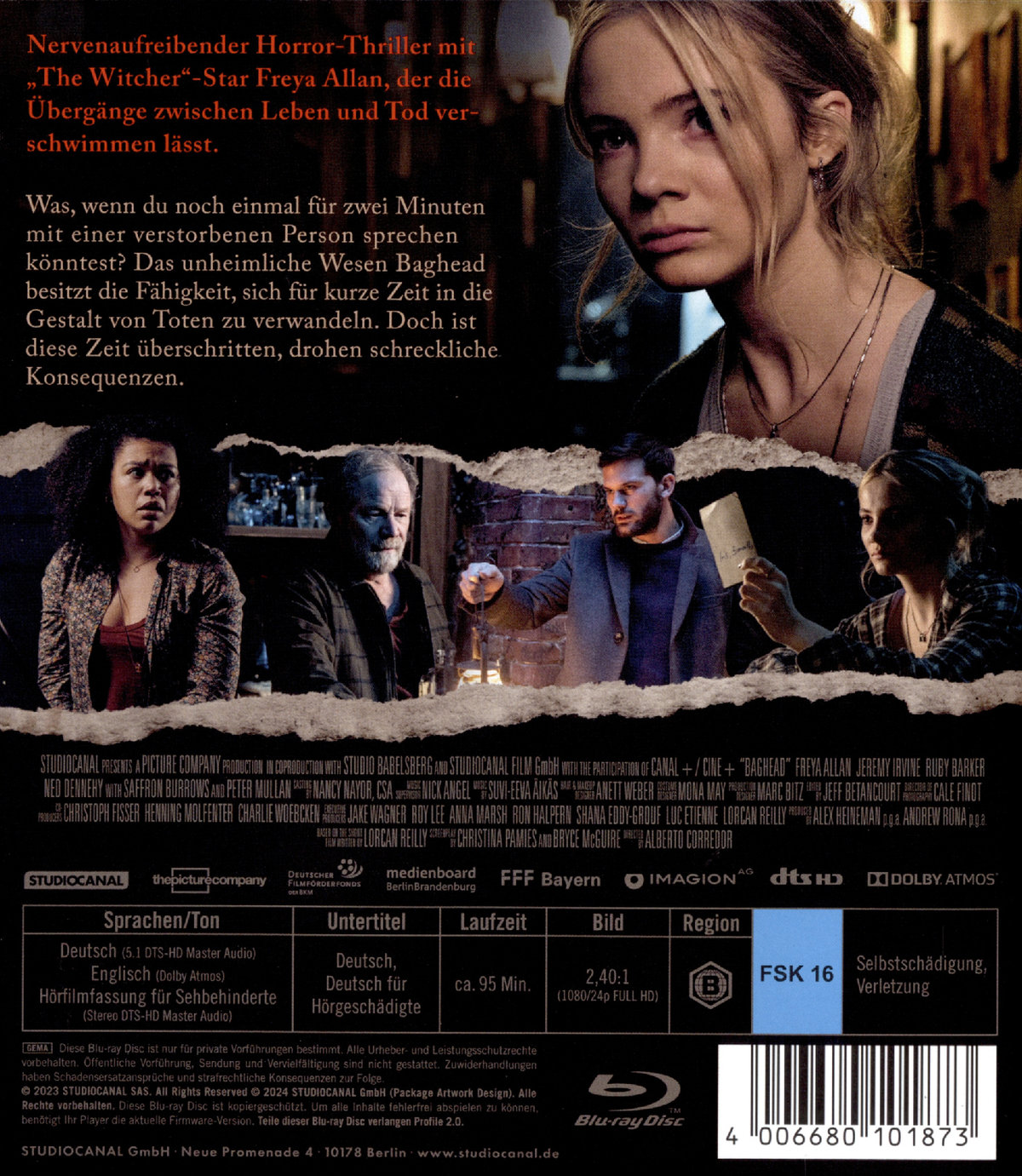 BAGHEAD wurde in Berlin, Babelsberg und Umgebung gedreht. Neben Freya Allan ("The Witcher", "Gunpowder Milkshake") und Ruby Barker ("Bridgerton") sind auch unter anderem die deutschen Darstellerinnen Julika Jenkins ("Dark", "Berlin Station"), Anne Müller ("Dogs of Berlin") und Svenja Jung ("Fly", "Der Pfau", "Der Palast") zu sehen. Regisseur Alberto Corredor inszenierte BAGHEAD in Zusammenarbeit mit Roy Lee, welcher unter anderem "Es" und "Ring" produzierte.