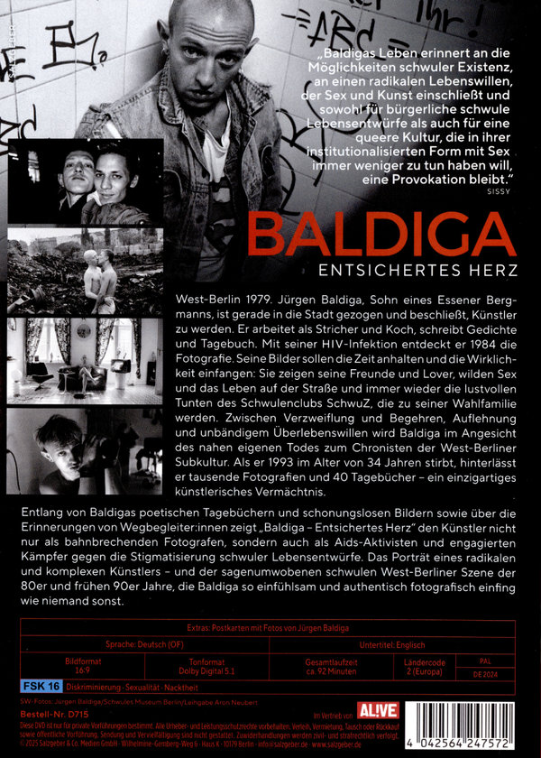 West-Berlin 1979. Jürgen Baldiga, Sohn eines Essener Bergmanns, ist gerade in die Stadt gezogen und beschließt, Künstler zu werden. Er arbeitet als Stricher und Koch, schreibt Gedichte und Tagebuch. Mit seiner HIV-Infektion entdeckt er 1984 die Fotografie. Seine Bilder sollen die Zeit anhalten und die Wirklichkeit einfangen: Sie zeigen seine Freunde und Lover, wilden Sex und das Leben auf der Straße und immer wieder die lustvollen Tunten des Schwulenclubs SchwuZ, die zu seiner Wahlfamilie werden. Zwischen Verzweiflung und Begehren, Auflehnung und unbändigem Überlebenswillen wird Baldiga im Angesicht des nahen eigenen Todes zum Chronisten der West-Berliner Subkultur. Als er 1993 im Alter von 34 Jahren stirbt, hinterlässt er tausende Fotografien und 40 Tagebücher – ein einzigartiges künstlerisches Vermächtnis.