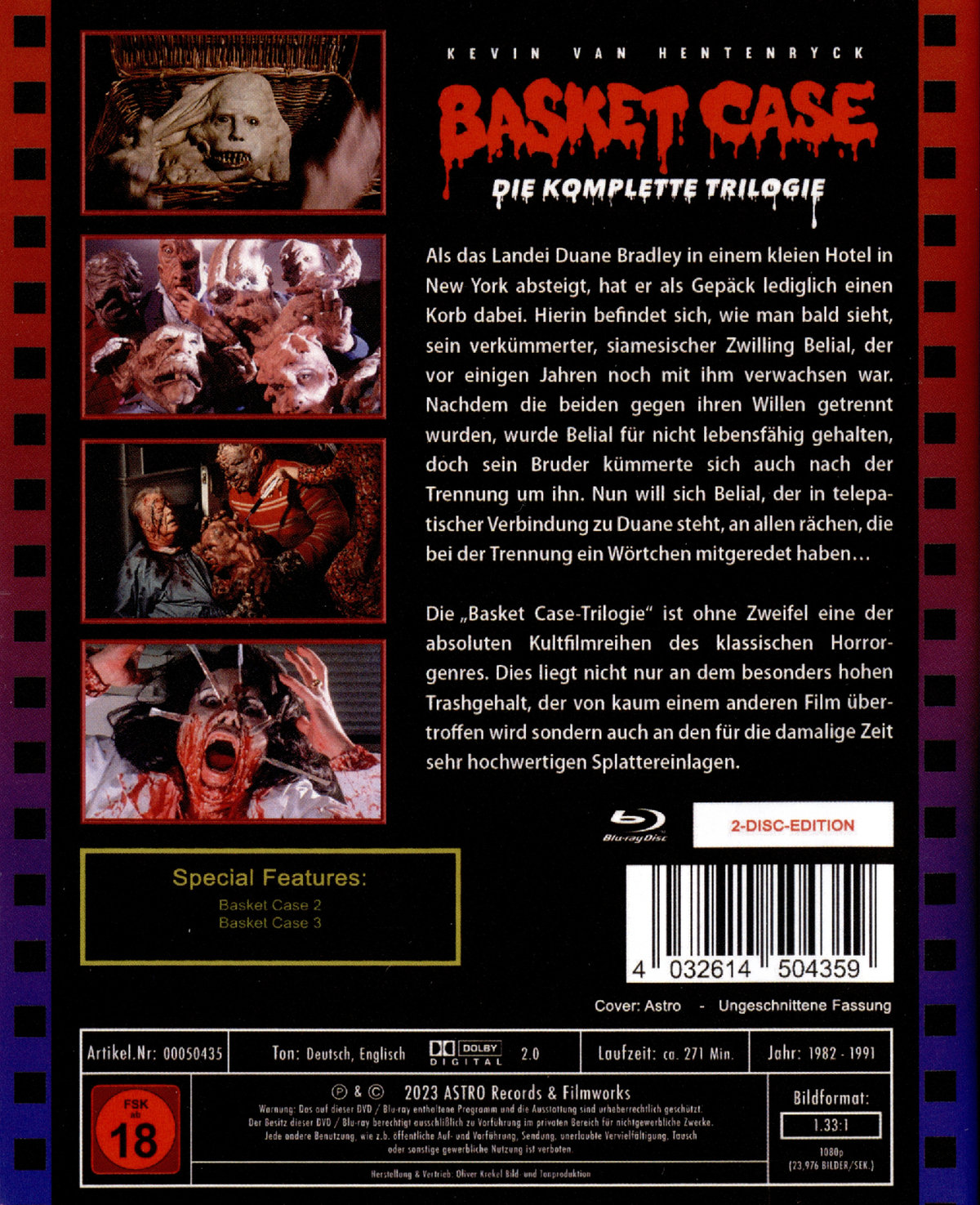 Basket Case 1-3 / 3 Filme auf einer Blu-Ray + 1 Blu-ray: Basket Case 1 - Der unheimliche Zwilling (neue Version) - Astro Design (limitiert auf 500 Stück in Full Sleeve Scanavo-Box)