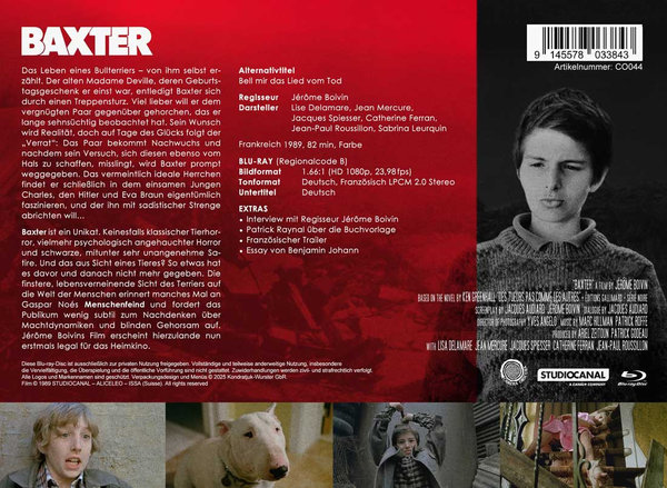 BAXTER ist ein Unikat. Keinesfalls klassischer Tierhorror, vielmehr psychologisch angehauchter Horror und schwarze, mitunter sehr unangenehme Satire. Und das aus Sicht eines Tieres? So etwas hat es davor und danach nicht mehr gegeben. Die finstere, lebensverneinende Sicht des Terriers auf die Welt der Menschen erinnert manches Mal an Gaspar Noés MENSCHENFEIND und fordert das Publikum wenig subtil zum Nachdenken über Machtdynamiken und blinden Gehorsam auf. Jérôme Boivins Film erscheint hierzulande nun erstmals legal für das Heimkino.