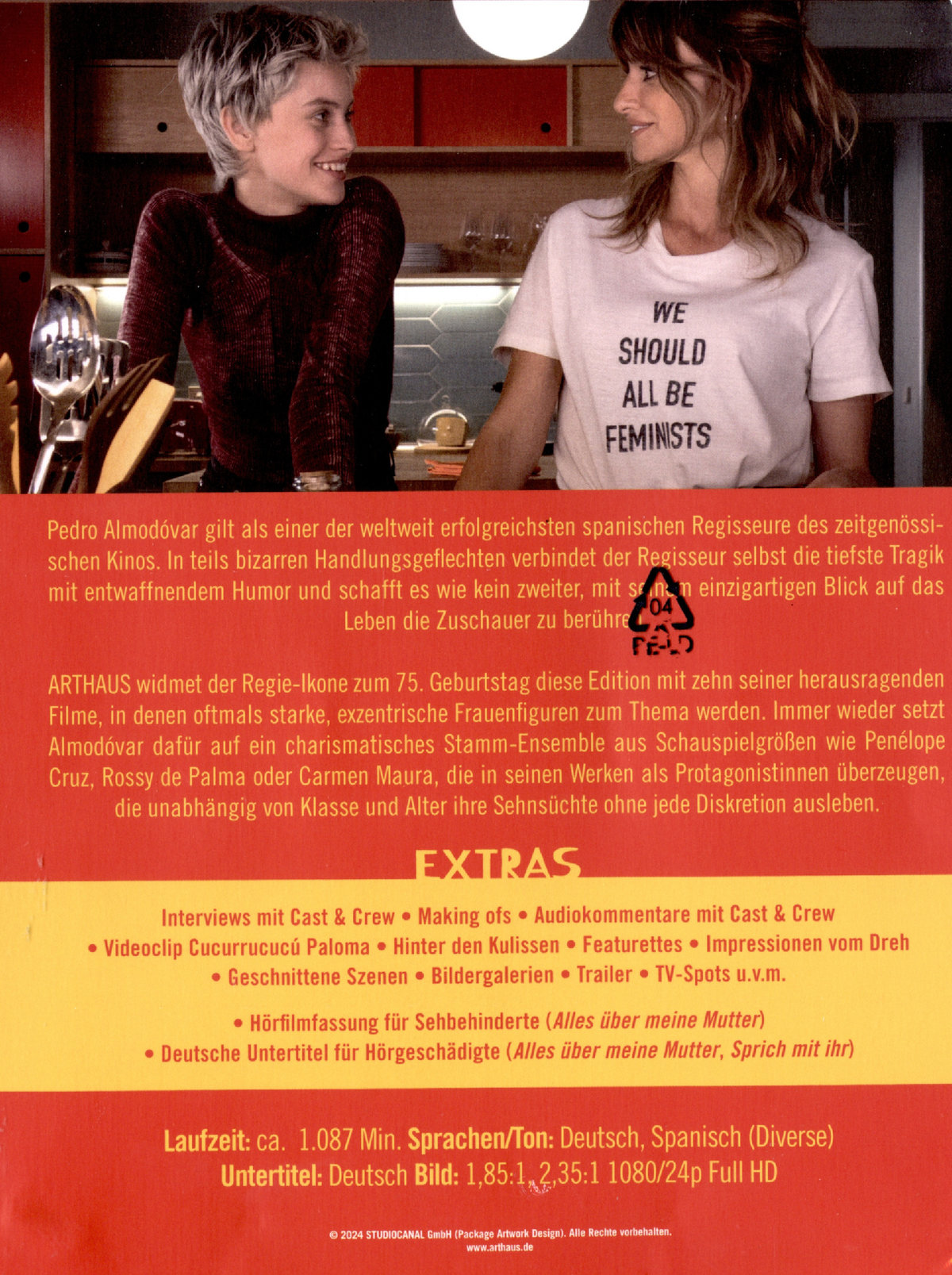 Pedro Almodóvar gilt als einer der weltweit erfolgreichsten spanischen Regisseure des zeitgenössischen Kinos. In teils bizarren Handlungsgeflechten verbindet der Regisseur selbst die tiefste Tragik mit entwaffnendem Humor und schafft es wie kein zweiter, mit seinem einzigartigen Blick auf das Leben die Zuschauer zu berühren. ARTHAUS widmet der Regie-Ikone zum 75. Geburtstag eine Box mit zehn seiner herausragenden Filme, in denen oftmals starke, exzentrische Frauenfiguren zum Thema werden. Immer wieder setzt Almodóvar dafür auf ein charismatisches Stamm-Ensemble aus Schauspielgrößen wie Penélope Cruz, Rossy de Palma oder Carmen Maura, die in seinen Werken als Protagonistinnen überzeugen, die unabhängig von Klasse und Alter ihre Sehnsüchte ohne jede Diskretion ausleben. (10 Blu-rays)