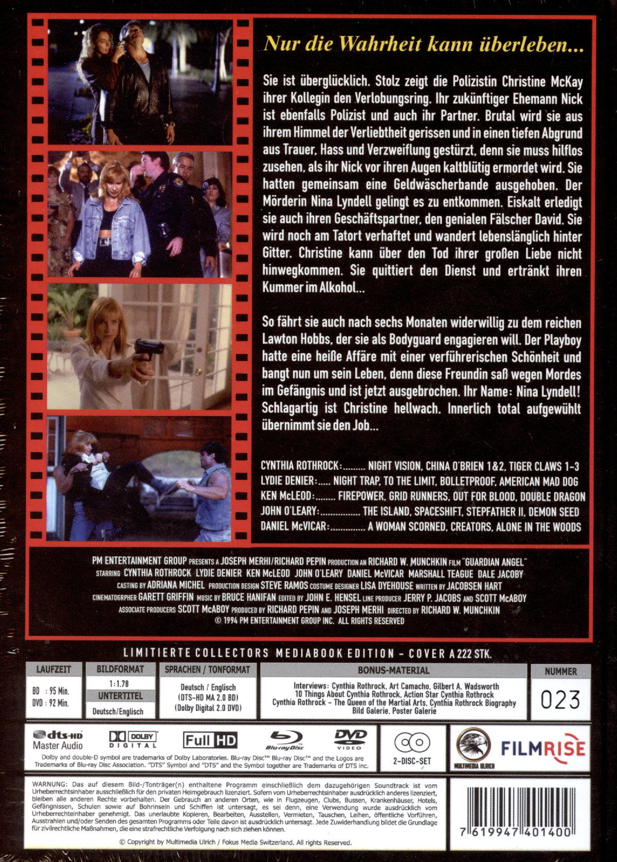 Sie ist überglücklich. Stolz zeigt die Polizistin Christine McKay (CYNTHIA ROTHROCK) ihrer Kollegin den Verlobungsring. Ihr zukünftiger Ehemann Nick ist ebenfalls Polizist und auch ihr Partner. Brutal wird sie aus ihrem Himmel der Verliebtheit gerissen und in einen tiefen Abgrund aus Trauer, Haß und Verzweiflung gestürzt, denn sie muß hilflos zusehen, als ihr Nick vor ihren Augen kaltblütig ermordet wird. Sie hatten gemeinsam eine Geldwäscherbande ausgehoben. Der Mörderin Nina Lyndell (LYDIE DENIER) gelingt es zu entkommen. Eiskalt erledigt sie auch ihren Geschäftspartner, den genialen Fälscher David. Sie wird noch am Tatort verhaftet und wandert lebenslänglich hinter Gitter. Christine kann über den Tod ihrer großen Liebe nicht hinwegkommen. Sie quittiert den Dienst und ertränkt ihren Kummer im Alkohol ... So fährt sie auch nach sechs Monaten widerwillig zu dem reichen Lawton Hobbs (DANIEL MCVICAR), der sie als Bodyguard engagieren will. Der Playboy hatte eine heiße Affäre mit einer verführerischen Schönheit und bangt nun um sein Leben, denn diese Freundin saß wegen Mordes im Gefängnis und ist jetzt ausgebrochen. Ihr Name: Nina Lyndell! Schlagartig ist Christine hellwach. Innerlich total aufgewühlt übernimmt sie den Job ...