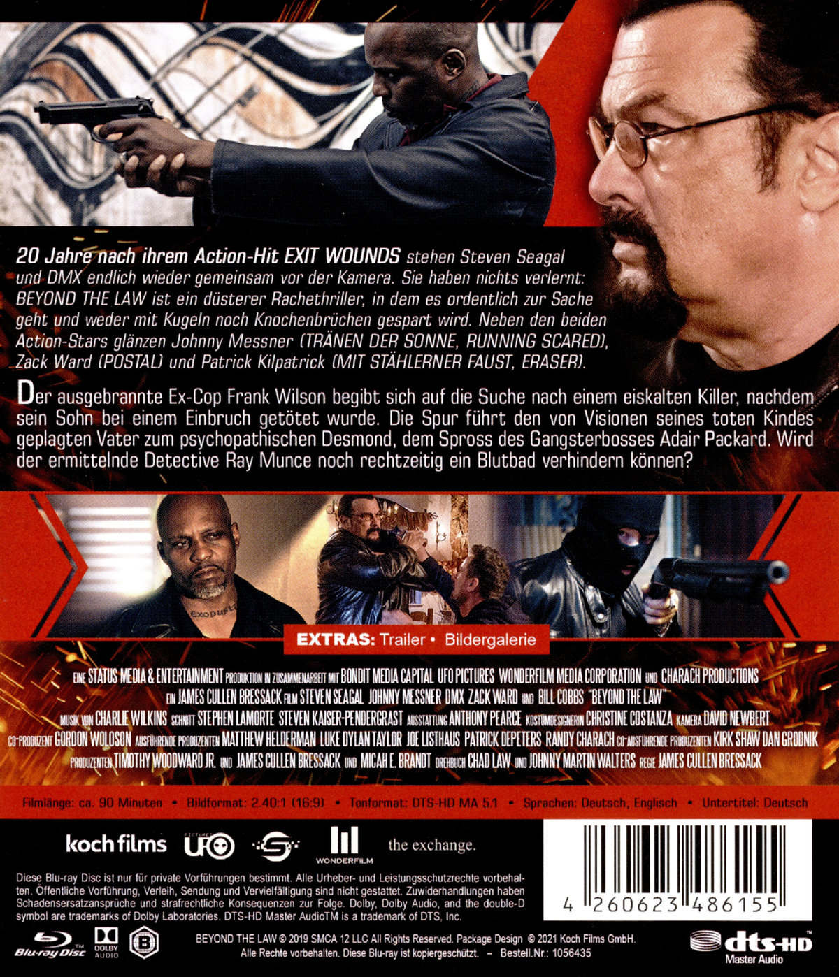 20 Jahre nach ihrem Action-Hit EXIT WOUNDS stehen Steven Seagal und DMX endlich wieder gemeinsam vor der Kamera. Sie haben nichts verlernt: BEYOND THE LAW ist ein düsterer Rachethriller, in dem es ordentlich zur Sache geht und weder mit Kugeln noch Knochenbrüchen gespart wird. Neben den beiden Action-Stars glänzen Johnny Messner (TRÄNEN DER SONNE, RUNNING SCARED), Zack Ward (POSTAL) und Patrick Kilpatrick (MIT STÄHLERNER FAUST, ERASER).
