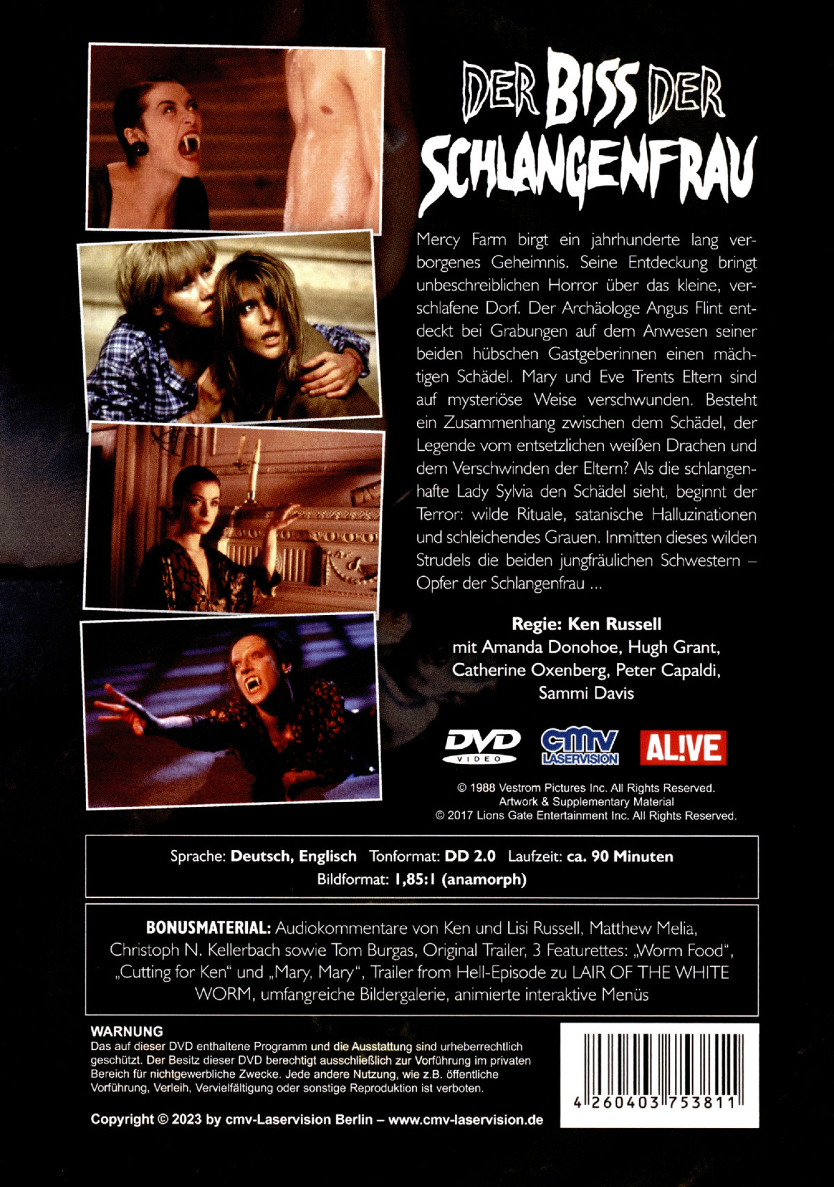 Audiokommentar von Ken Russell; Audiokommentar von Lisi Russell und dem Filmhistoriker Matthew Melia; Audiokommentar von Christoph N. Kellerbach und Tom Burgas; Original Trailer; Featurette "Worm Food"; Featurette "Cutting for Ken"; Featurette "Mary; Mary"; Trailer from Hell-Episode zu "Lair of the white worm"; umfangreiche Bildergalerie; animierte interaktive Menus