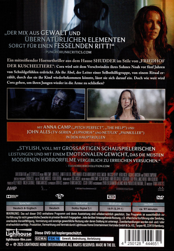 Ein mitreißender Horrorthriller im Stile von "FRIEDHOF DER KUSCHELTIERE": Cora wird seit dem Verschwinden ihres Sohnes Noah vor fünf Jahren von Schuldgefühlen erdrückt. Als ihr Abel, der Leiter einer Selbsthilfegruppe, von einem Ritual erzählt, durch das sie ihr Kind wiederbekommen könnte, lässt sie sich darauf ein. Doch wie weit wird Cora gehen, um ihren Jungen wieder in die Arme zu schließen?