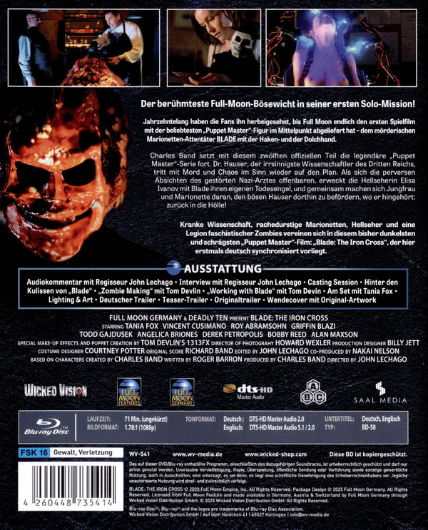 Kranke Wissenschaft, rachedurstige Marionetten, Hellseher und eine Legion faschistischer Zombies vereinen sich in diesem bisher dunkelsten und schrägsten „Puppet Master“-Film: „Blade: The Iron Cross“, der hier erstmals deutsch synchronisiert vorliegt.