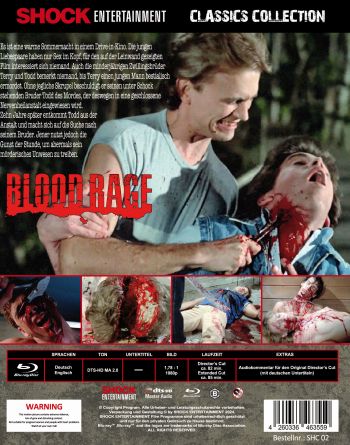 Es ist eine warme Sommernacht in einem Drive-in-Kino. Die jungen Liebespaare habne nur Sex im Kopf, für den auf der Leinwand gezeigten Film interessiert sich niemand. Ach die Minderjährigen Zwillingsbrüder Terry und Todd bemerkt niemand, bis Terry einen jungen Mann bestialisch ermordet. Ohne jegliche Skrupel beschuldigt er seinen unter Schock stehenden Bruder Todd des Mordes, der deswegen in eine geschlosssene Nervenheilanstalt eingewiesen wird. Zehn Jahre später entkommt Todd aus der Anstalt und macht sich auf die Suche nach seinem Bruder. Jener nutzt jedoch die Gunst der Stunde, um abermals sein mörderisches Unwesen zu treiben. BLOOD RAGE ist eine vergessene Slasher-Perle aus den 80er-Jahren, die nun endlich ein jeder für sich entdecken kann. Eine spannende Geschichte trifft auf brutalste Gore-Effekte, die jeden Kill zu einem blutigen Event werden lassen. Dabei macht der Film keine Gefangenen und setzt stattdessen von Anfang an auf ein Höchstmaß an Tempo.