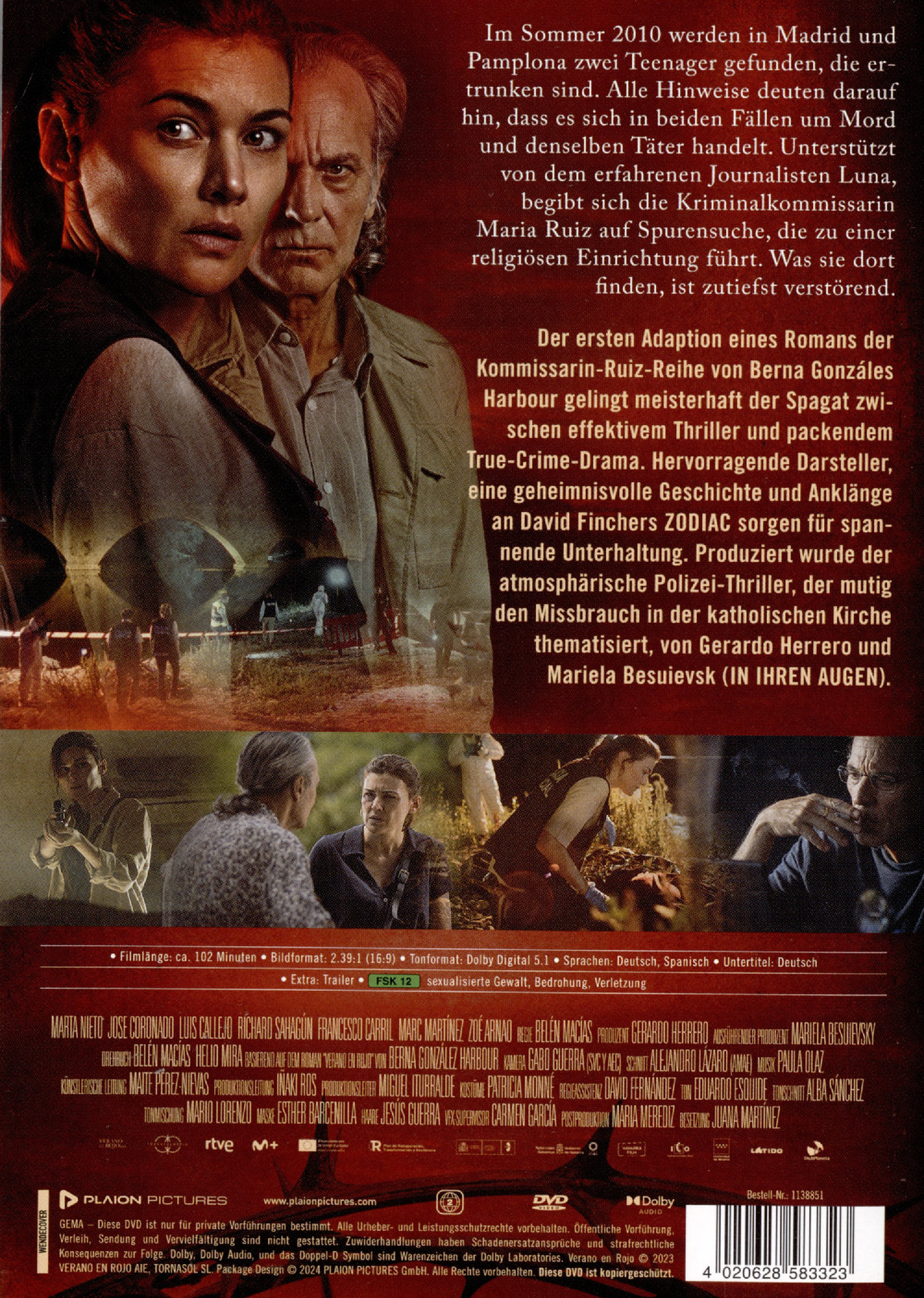 Der ersten Adaption eines Romans der Kommissarin-Ruiz-Reihe von Berna Gonzáles Harbour gelingt meisterhaft der Spagat zwischen effektivem Thriller und packendem True-Crime-Drama. Hervorragende Darsteller, eine geheimnisvolle Geschichte und Anklänge an David Finchers ZODIAC sorgen für spannende Unterhaltung. Produziert wurde der atmosphärische Polizei-Thriller, der mutig den Missbrauch in der katholischen Kirche thematisiert, von Gerardo Herrero und Mariela Besuievsk (IN IHREN AUGEN).