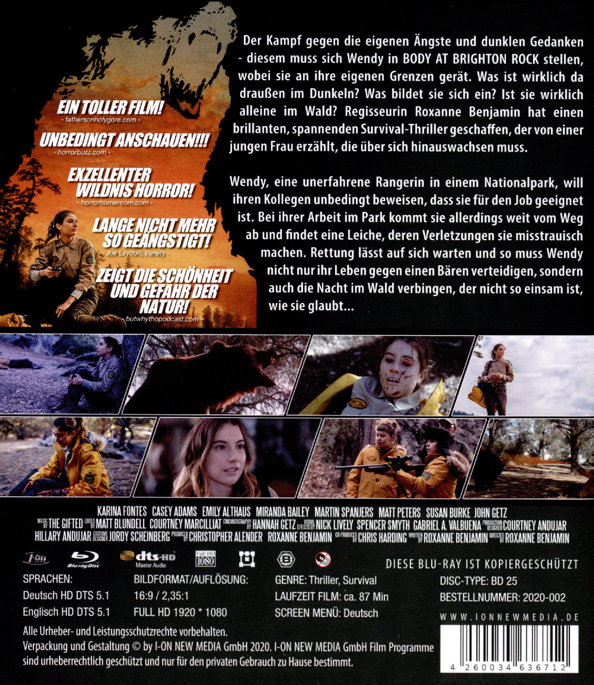 Wendy, eine unerfahrene Rangerin in einem Nationalpark, will ihren Kollegen unbedingt beweisen, dass sie für den Job geeignet ist. Bei ihrer Arbeit im Park kommt sie allerdings weit vom Weg ab und findet eine Leiche, deren Verletzungen sie misstrauisch machen. Rettung lässt auf sich warten und so muss Wendy nicht nur ihr Leben gegen einen Bären verteidigen, sondern auch die Nacht im Wald verbingen, der nicht so einsam ist, wie sie glaubt...