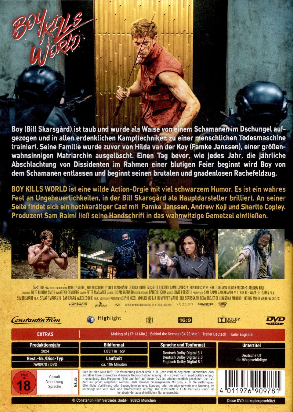 Eine wilde Action-Orgie mit viel schwarzem Humor mit Bill Skarsgård!Boy (Bill Skarsgård) ist taub und wurde als Waise von einem Schamanen im Dschungel aufgezogen und in allen erdenklichen Kampftechniken zu einer menschlichen Todesmaschine trainiert. Seine Familie wurde zuvor von Hilda van der Koy (Famke Janssen), einer größenwahnsinnigen Matriarchin ausgelöscht. Einen Tag bevor, wie jedes Jahr, die jährliche Abschlachtung von Dissidenten im Rahmen einer blutigen Feier beginnt wird Boy von dem Schamanen entlassen und beginnt seinen brutalen und gnadenlosen Rachefeldzug.
