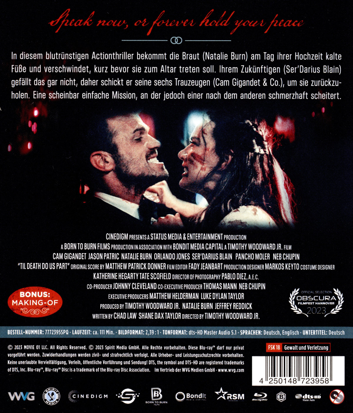 In diesem Actionthriller bekommt die Braut (Natalie Burn) am Tag ihrer Hochzeit kalte Füße und verschwindet, kurz bevor sie zum Altar treten soll. Ihrem Zukünftigen (Ser‘Darius Blain), gefällt das gar nicht, daher schickt er seine sechs Trauzeugen (Cam Gigandet und co.), um sie zurückzuholen. Eine scheinbar einfache Mission, an der jedoch einer nach dem anderen, langsam und schmerzhaft scheitert.