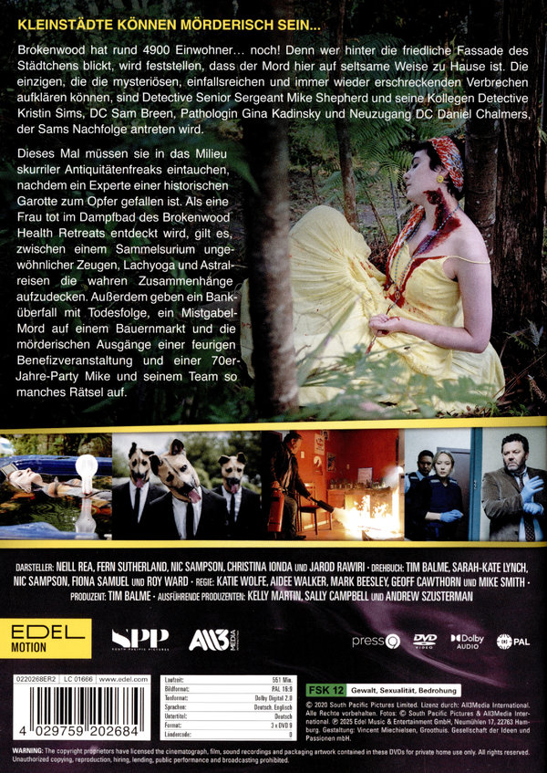 Dieses Mal müssen sie in das Milieu skurriler Antiquitätenfreaks eintauchen, nachdem ein Experte einer historischen Garotte zum Opfer gefallen ist. Als eine Frau tot im Dampfbad des Brokenwood Health Retreats entdeckt wird, gilt es, zwischen einem Sammelsurium ungewöhnlicher Zeugen, Lachyoga und Astralreisen die wahren Zusammenhänge aufzudecken. Außerdem geben ein Banküberfall mit Todesfolge, ein Mistgabel-Mord auf einem Bauernmarkt sowie die mörderischen Ausgänge einer Benefizveranstaltung und einer 70er-Jahre-Party Mike und seinem Team so manches Rätsel auf.