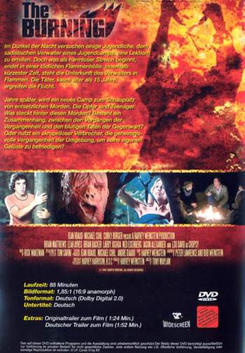The Burning/Brennende Rache,ist ein Absoluter Kult-Schocker!!!Tolle Splatterzenen gut Storry,Supper Bild und Ton Qualität!!!!Das ist bis jetzt die Beste Auflage die ich gesehen habe!!!!Kann ich nur wärmstens weiter Empfhelen!!!!!!!!!