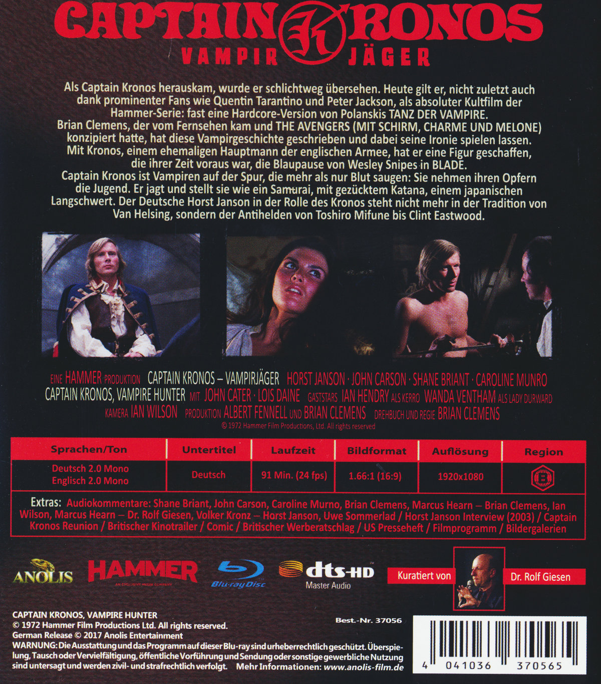 Als Captain Kronos herauskam, wurde er schlichtweg übersehen. Heute gilt er, nicht zuletzt auch dank prominenter Fans wie Quentin Tarantino und Peter Jackson, als absoluter Kultfilm der Hammer-Serie: fast eine Hardcore-Version von Polanskis TANZ DER VAMPIRE.