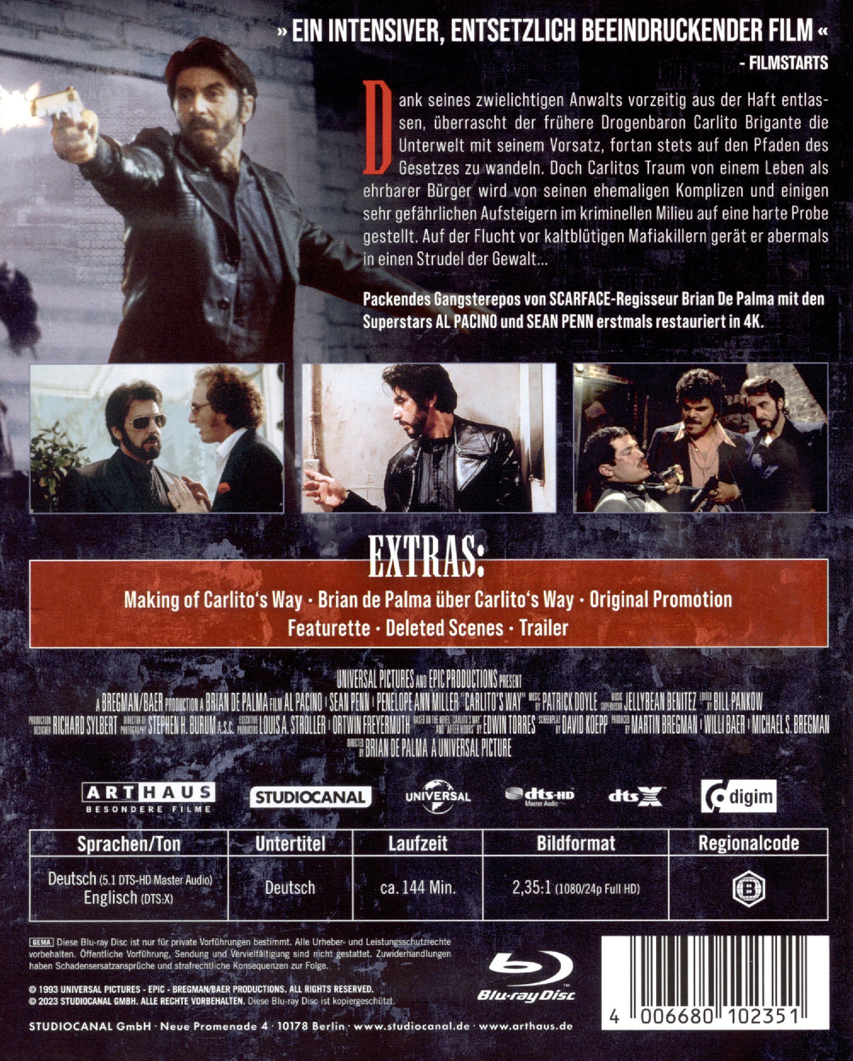 Brian De Palma inszenierte einige Jahre nach "Scarface" erneut einen packenden Gangsterthriller mit Superstar Al Pacino in der Hauptrolle, basierend auf dem Buch "After Hours" von Edwin Torres. Auch die Nebenrollen sind mit Sean Penn ("Milk"), Penelope Ann Miller ("The Artist"), John Leguizamo ("John Wick: Kapitel 2") und Viggo Mortensen ("Tödliche Versprechen - Eastern Promises") glänzend besetzt.