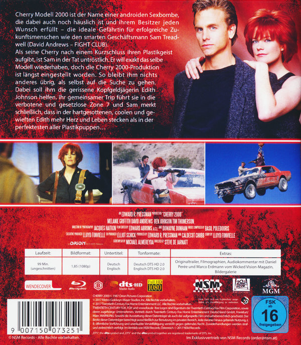 Cherry Modell 2000 (Pamela Gidley) ist der Name einer androiden Sexbombe, die dabei auch noch häuslich ist und ihrem Besitzer jeden Wunsch erfüllt - die ideale Gefährtin für erfolgreiche Zukunftsmenschen wie den smarten Geschäftsmann Sam Treadwell (David Andrews - "Fight Club"). Als seine Cherry nach einem Kurzschluss ihren Plastikgeist aufgibt, ist Sam in der Tat untröstlich. Er will exakt dasselbe Modell wiederhaben, doch die Cherry-2000-Produktion ist längst eingestellt worden. So bleibtihm nichts anderes übrig, als selbst auf die Suche zu gehen. Dabei soll ihm die gerissene Kopfgeldjägerin Edith Johnson (Melanie Griffith) helfen. Ihr gemeinsamer Trip führt sie in die verbotene und gesetzlose Zone 7 und Sam merkt schließlich, dass in der hartgesottenen, coolen und gewieften Edith mehr Herz und Leben steckt als in der perfektesten aller Plastikpuppen...