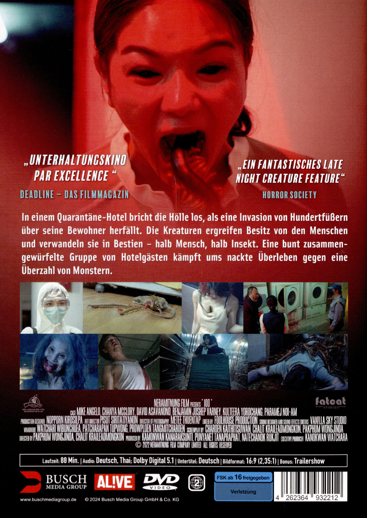 Schräges und blutiges Creature Feature mit drastischem Body-Horror. In einem Quarantäne-Hotel bricht die Hölle los, als eine Invasion von Tausendfüßlern über die Bewohner herfällt. Die Kreaturen ergreifen Besitz von den Menschen und verwandeln sie in Bestien - halb Mensch, halb Insekt. Eine bunt zusammengewürfelte Gruppe von Hotelgästen kämpft ums nackte Überleben gegen eine Überzahl von Monstern.