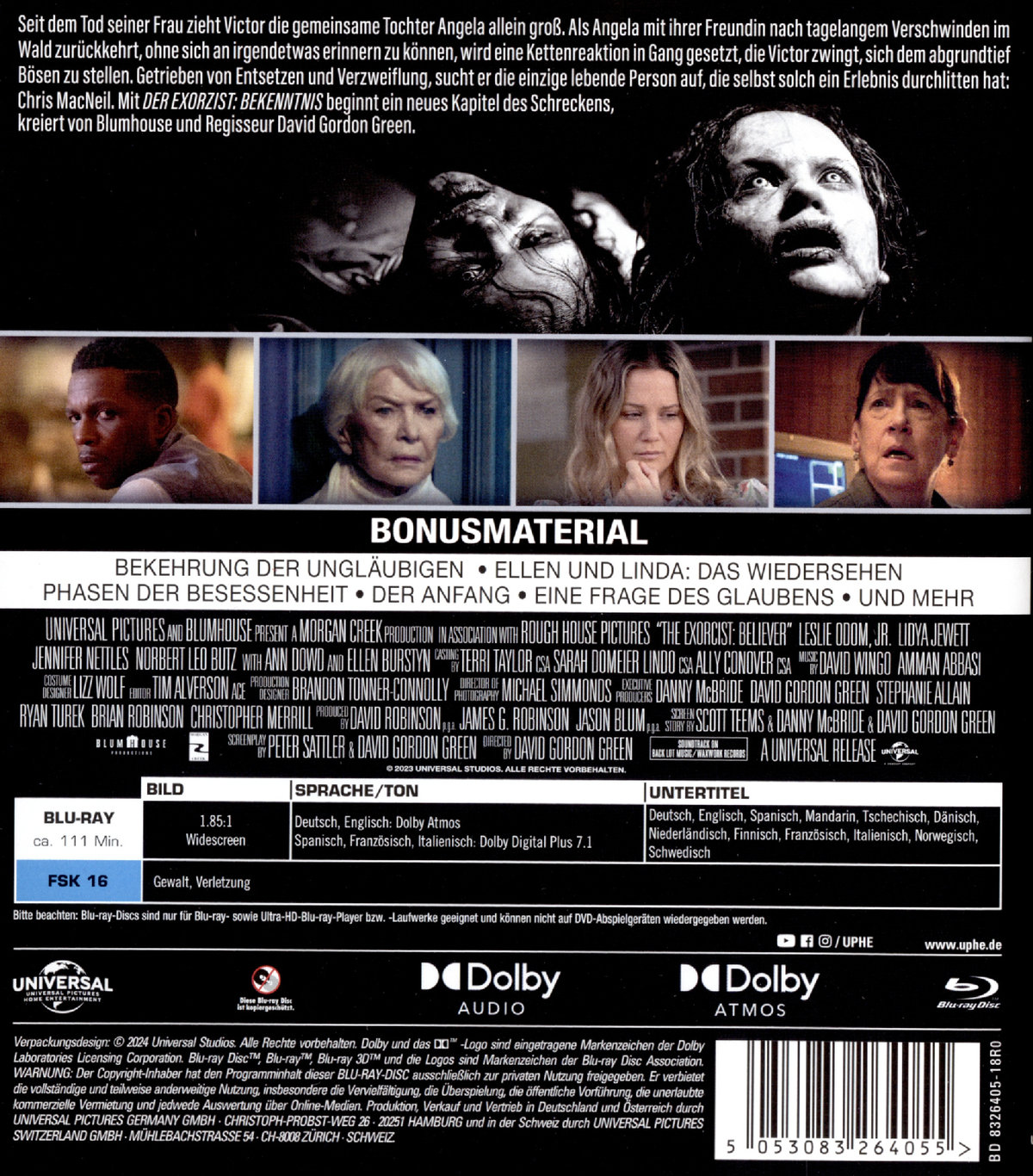 Seit dem Tod seiner Frau vor zwölf Jahren zieht Victor Fielding (Tony-Gewinner und Oscar®-Nominierter Leslie Odom Jr., "Hamilton", "One Night in Miami") die gemeinsame Tochter Angela (Lidya Jewett, "Good Girls") allein groß. Als Angela mit ihrer Freundin Katherine (Newcomerin Olivia Marcum) nach tagelangem Verschwinden im Wald zurückkehrt, ohne sich an irgendetwas erinnern zu können, wird eine Kettenreaktion in Gang gesetzt, die Victor zwingt, sich dem abgrundtief Bösen zu stellen.Vor genau fünfzig Jahren schockierte der furchteinflößendste Horrorfilm der Kinogeschichte Zuschauer auf der ganzen Welt. Mit "Der Exorzist: Bekenntnis" beginnt ein neues Kapitel des Schreckens, kreiert von Blumhouse und Regisseur David Gordon Green, die zuvor mit ihrer Erweckung des Halloween-Franchise für Furore sorgten.