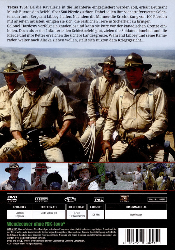 Texas 1934: Da die Kavallerie in die Infanterie eingegliedert werden soll, erhält Leutnant Marsh Buxton den Befehl, über 500 Pferde zu töten. Dabei sollen ihm vier strafversetzte Soldaten, darunter Sergeant Libbey, helfen. Nachdem die Männer die Erschießung von 100 Pferden mit ansehen mussten, einigen sie sich, die restlichen Tiere in Sicherheit zu bringen. Colonel Hardesty verfolgt sie gnadenlos und kann sie kurz vor der kanadischen Grenze einholen. Doch als er der Infanterie den Schießbefehl gibt, zielen die Soldaten daneben und die Pferde und ihre Retter erreichen die sichere Landesgrenze. Während Libbey und seine Kameraden weiter nach Alaska ziehen wollen, stellt sich Buxton dem Kriegsgericht...