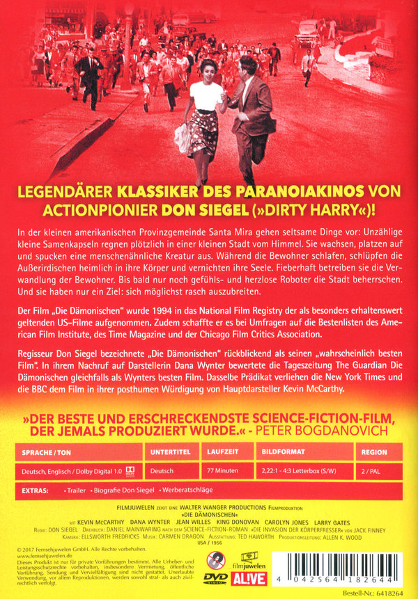Darsteller: Kevin McCarthy, Dana Wynter, Larry Gates, King Donovan, Kenneth Patterson, Virginia Christine, Carolyn Jones