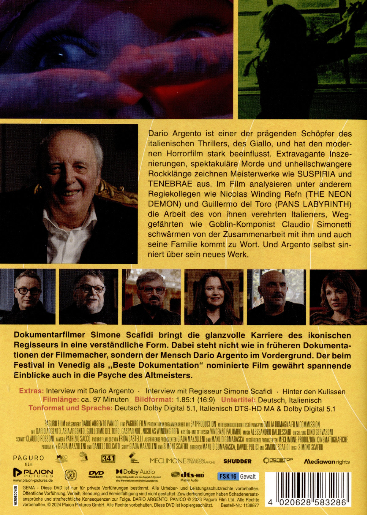 Dario Argento ist einer der prägenden Schöpfer des italienischen Thrillers, des Giallo, und hat den modernen Horrorfilm stark beeinflusst. Extravagante Inszenierungen, spektakuläre Morde und unheilschwangere Rockklänge zeichnen Meisterwerke wie SUSPIRIA und TENEBRAE aus. Im Film analysieren unter anderem Regiekollegen wie Nicolas Winding Refn (THE NEON DEMON) und Guillermo del Toro (PAN´S LABYRINTH) die Arbeit des von ihnen verehrten Italieners, Weggefährten wie Goblin-Komponist Claudio Simonetti schwärmen von der Zusammenarbeit mit ihm und auch seine Familie kommt zu Wort.. Und Argento selbst sinniert über sein neues Werk.