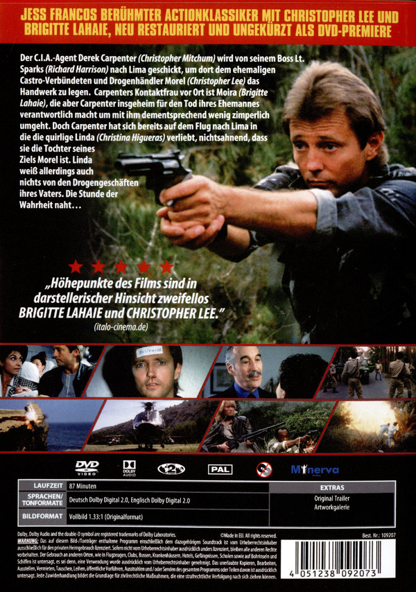Der C.I.A.-Agent Derek Carpenter (Christopher Mitchum) wird von seinem Boss Lt. Sparks (Richard Harrison) nach Lima geschickt, um dort dem ehemaligen Castro-Verbündeten und Drogenhändler Morel (Christopher Lee) das Handwerk zu legen. Carpenters Kontaktfrau vor Ort ist Moira (Brigitte Lahaie), die aber Carpenter insgeheim für den Tod ihres Ehemannes verantwortlich macht um mit ihm dementsprechend wenig zimperlich umgeht. Doch Carpenter hat sich bereits auf dem Flug nach Lima in die die quirlige Linda (Christina Higueras) verliebt, nichtsahnend, dass sie die Tochter seines Ziels Morel ist. Linda weiß allerdings auch nichts von den Drogengeschäften ihres Vaters. Die Stunde der Wahrheit naht...