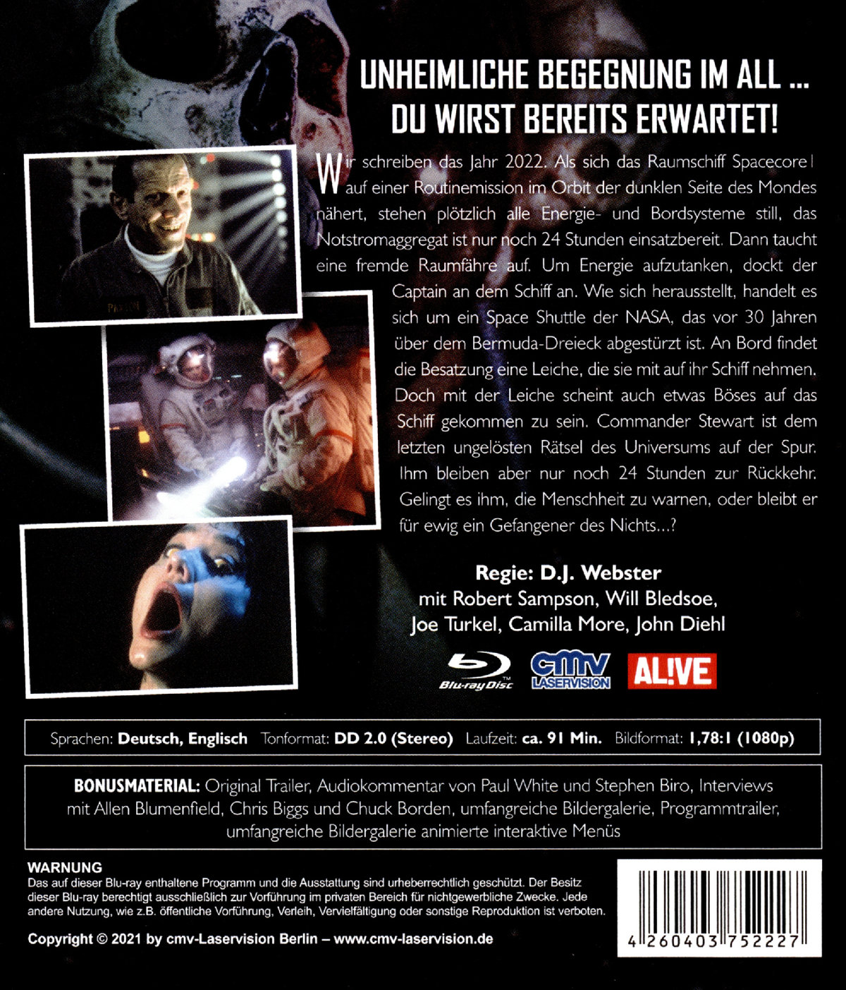 Wir schreiben das Jahr 2022. Als sich das Raumschiff Spacecore 1 auf einer Routinemission im Orbit der dunklen Seite des Mondes nähert, stehen plötzlich alle Energie- und Bordsysteme still, das Notstromaggregat ist nur noch 24 Stunden einsatzbereit. Dann taucht eine fremde Raumfähre auf. Um Energie aufzutanken, dockt der Captain an dem Schiff an. Wie sich herausstellt, handelt es sich um ein Space Shuttle der NASA, das vor 30 Jahren über dem Bermuda-Dreieck abgestürzt ist. An Bord findet die Besatzung eine Leiche, die sie mit auf ihr Schiff nehmen. Doch mit der Leiche scheint auch etwas Böses auf das Schiff gekommen zu sein. Commander Stewart ist dem letzten ungelösten Rätsel des Universums auf der Spur. Ihm bleiben aber nur noch 24 Stunden zur Rückkehr. Gelingt es ihm, die Menschheit zu warnen, oder bleibt er für ewig ein Gefangener des Nichts...?