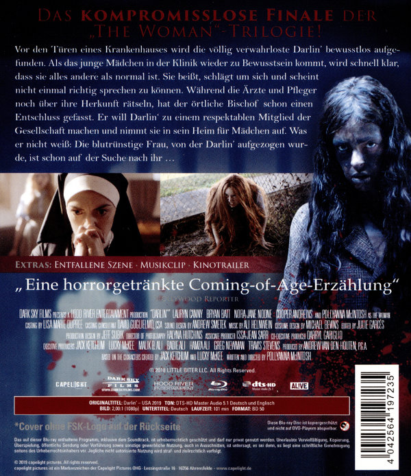 Vor den Türen eines Krankenhauses wird die völlig verwahrloste Darlin’ bewusstlos aufgefunden. Als das junge Mädchen in der Klinik wieder zu Bewusstsein kommt, wird schnell klar, dass sie kein normales Mädchen ist. Sie beißt, schlägt um sich und scheint nicht einmal richtig sprechen zu können. Während die Ärzte und Pfleger noch über ihre Herkunft rätseln, wittert der örtliche Bischof bereits seine Chance. Er möchte Darlin’ in sein katholisches Heim für Mädchen aufnehmen und sieht in der Zähmung der jungen Wilden die Möglichkeit, sein Institut vor der drohenden Schließung zu bewahren. Mit allen Mitteln versuchen er und die Nonnen der Einrichtung aus Darlin' ein respektables Mitglied der Gesellschaft zu machen. Was sie nicht wissen: die blutrünstige Frau, von der das Mädchen aufgezogen wurde, ist schon auf der Suche nach ihr … Die langerwartete Fortsetzung von "Beutegier" und "The Woman". Pressezitat: - McIntosh versteht die Stärke dieser seltsamen Reihe, bei der es darum geht, dass der Mensch von Natur aus wild und ein Rudelwesen ist, egal wie gepflegt und gut erzogen wir auch erscheinen mögen". - (LOS ANGELES TIMES)