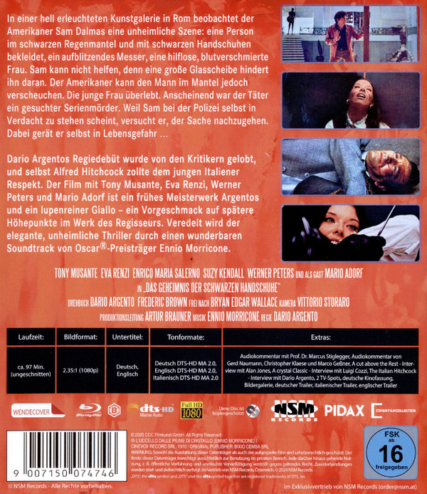 Deutsche Kinofassung (93min); Audiokommentar mit Prof. Dr. Marcus Stiglegger; Audiokommentar von Gerd Naumann; Christopher Klaese und Marco Geßner; Deutscher Trailer; Italienischer Trailer; Englischer Trailer; A cut above the Rest ; Interview mit Alan Jones (Englisch mit optionalen deutschen und englischen Untertiteln); A crystal Classic ; Interview mit Luigi Cozzi (Italienisch mit optionalen deutschen und englischen Untertiteln); The Italian Hitchcock ; Interview mit Dario Argento (Italienisch mit optionalen deutschen und englischen Untertiteln); TV-Spot 1; TV-Spot 2; Bildergalerie; Wendecover mit 2. Motiv
