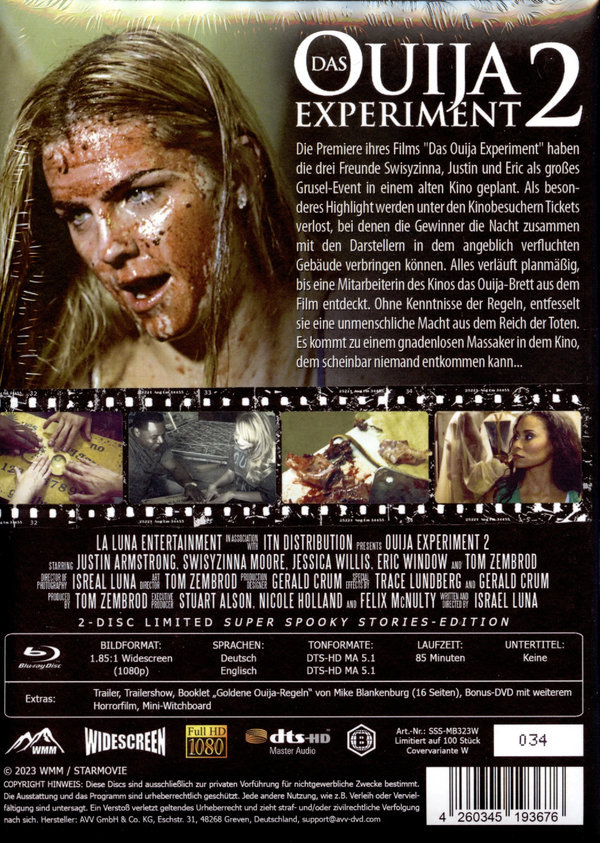 Extras: Trailer, Trailershow, Booklet „Goldene Ouija-Regeln“ von Mike Blankenburg (16 Seiten), Bonus-DVD mit weiterem Horrorfilm