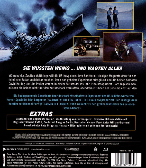 Die hochspannende Geschichte über das wohl rätselhafteste Experiment des US-Militärs wurde von Horror-Spezialist John Carpenter (HALLOWEEN, THE FOG - NEBEL DES GRAUENS) produziert. Der unvergessene Kultfilm mit Michael Paré (STRASSEN IN FLAMMEN) zählt zurecht zu den großen Klassikern des Science Fiction-Genres.