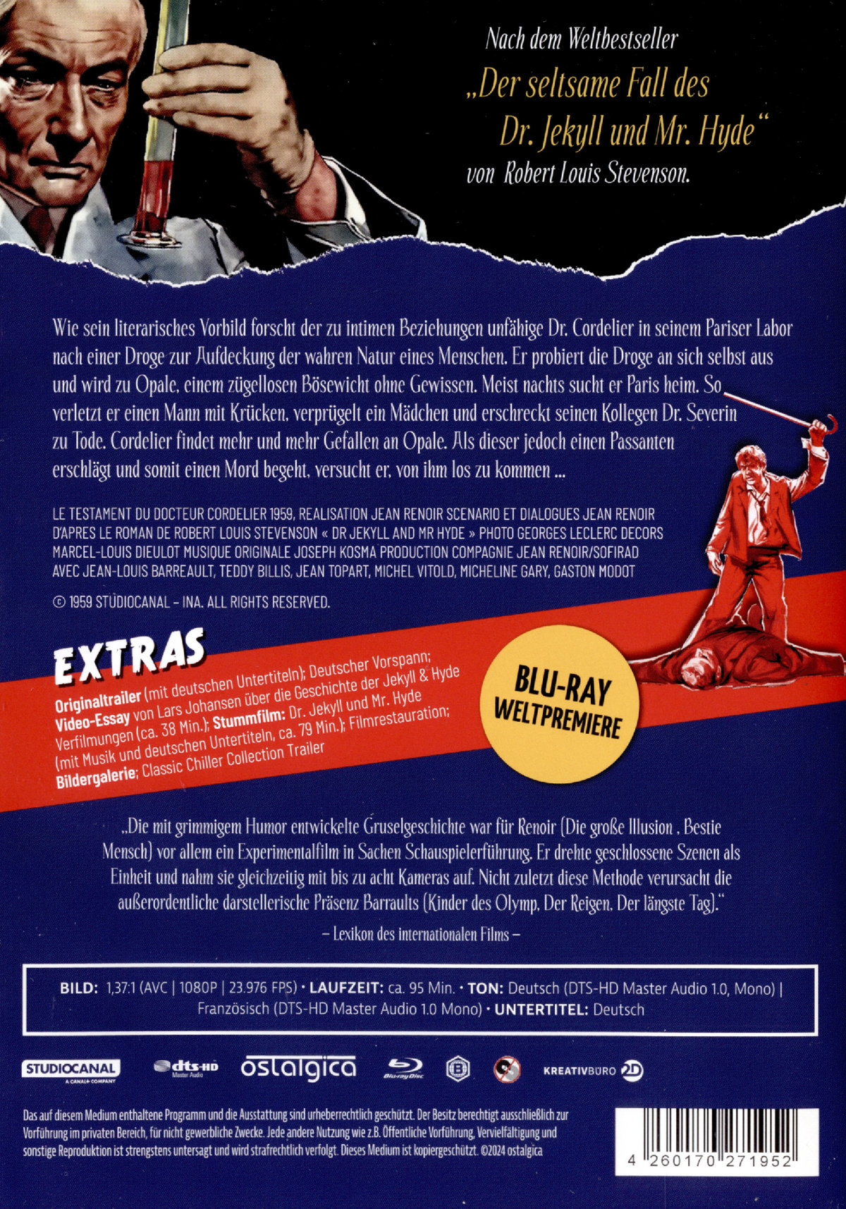 Wie sein literarisches Vorbild forscht der zu intimen Beziehungen unfähige Dr. Cordelier in seinem Pariser Labor nach einer