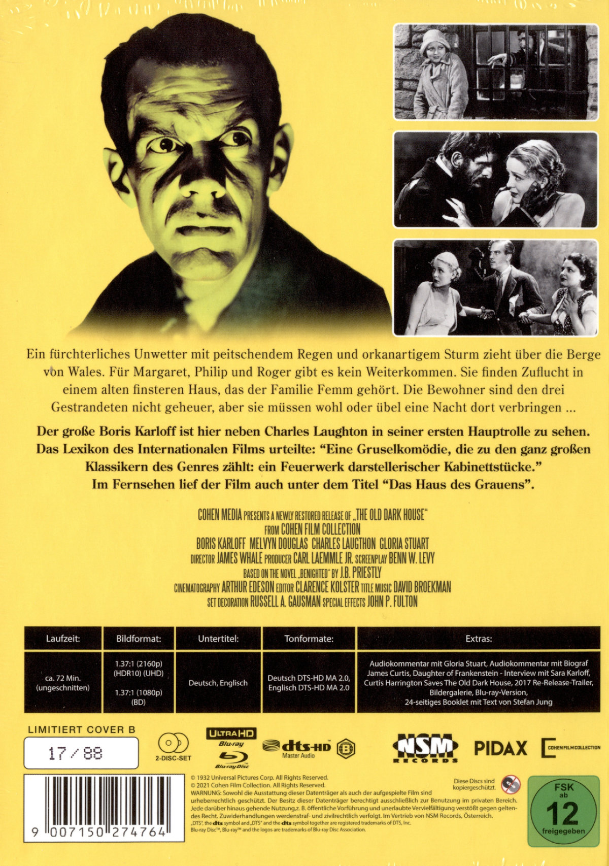 Ein fürchterliches Unwetter mit peitschendem Regen und orkanartigem Sturm zieht über die Berge von Wales. Für Margaret, Philip und Roger gibt es kein Weiterkommen. Sie finden Zuflucht in einem alten finsteren Haus, das der Familie Femm gehört. Die Bewohner sind den drei Gestrandeten nicht geheuer, aber sie müssen wohl oder übel eine Nacht dort verbringen ... Der große Boris Karloff ist hier neben Charles Laughton in seiner ersten Hauptrolle zu sehen. Das Lexikon des Internationalen Films urteilte: "Eine Gruselkomödie, die zu den ganz großen Klassikern des Genres zählt: ein Feuerwerk darstellerischer Kabinettstücke." Im Fernsehen lief der Film auch unter dem Titel "Das Haus des Grauens".