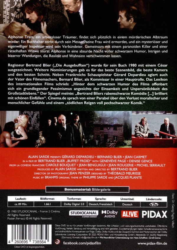 Produktinformationen "Den Mörder trifft man am Buffet (Buffet froid) / Preisgekrönte und rabenschwarze Krimikomödie mit Gérard Depardieu und Bernard Blier (Pidax Film-Klassiker) (DVD)"