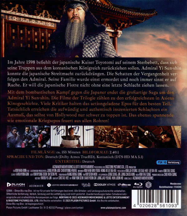 Mit dem bombastischen Kampf gegen die Japaner endet die großartige Saga um den Admiral Yi Sun-sin. Die Filme der Trilogie zählen zu den erfolgreichsten in Asiens Kinogeschichte. Viele Kritiker halten das actiongeladene Epos für den besten Teil. Tatsächlich erreichen die aufwändig und authentisch inszenierten Schlachten ein Ausmaß, das selbst von Hollywood nur schwer zu toppen ist. Das ebenso spannende wie emotionale Kriegsepos feuert aus allen Rohren.