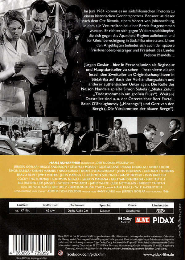 Der Rivonia-Prozeß / Fesselnder Zweiteiler über den historischen Prozess um Nelson Mandela (Pidax Historien-Klassiker) (DVD)