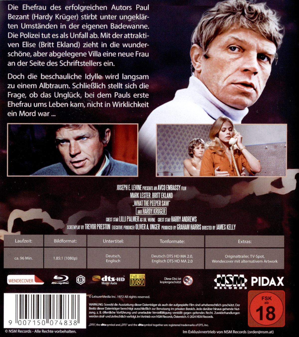 Die Ehefrau des erfolgreichen Autors Paul Bezant (Hardy Krüger) stirbt unter ungeklärten Umständen in der eigenen Badewanne. Die Polizei tut es als Unfall ab. Mit der attraktiven Elise (Britt Ekland) zieht in die wunderschöne, aber abgelegene Villa eine neue Frau an der Seite des Schriftstellers ein. Doch die beschauliche Idylle wird langsam zu einem Alptraum. Schließlich stellt sich die Frage, ob das Unglück, bei dem Pauls erste Ehefrau ums Leben kam, nicht in Wirklichkeit ein Mord war ... Dieser spannende Psychothriller mit den Weltstars Hardy Krüger, Lilli Palmer und Bond-Girl Britt Ekland lief unter dem Titel "Diabolisch" in den Kinos.